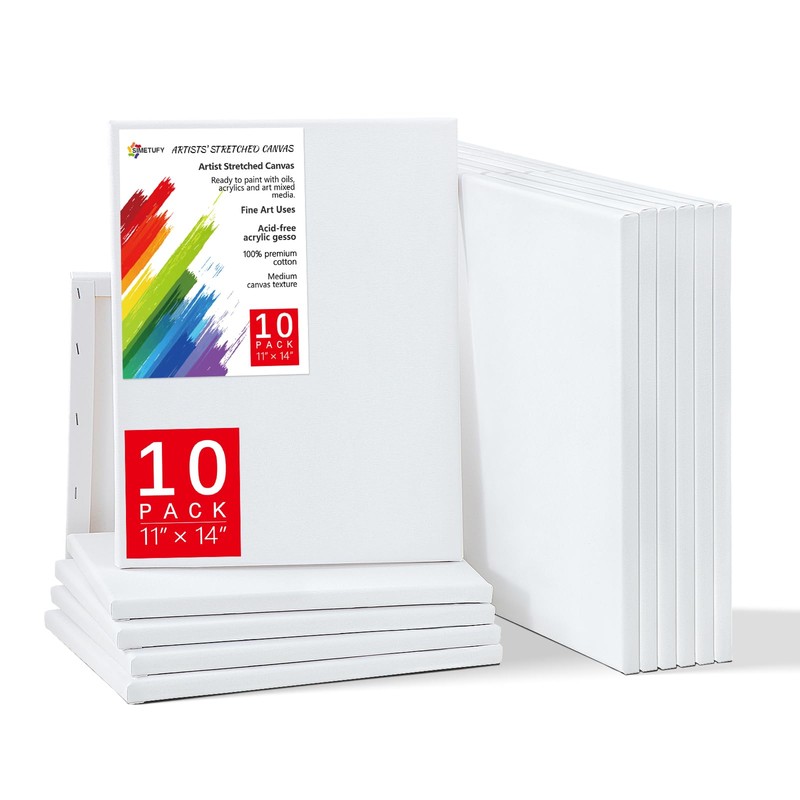 11x14 Inch Stretched Canvas, 10 Pack 100% Cotton Professional Blank Canvas, Canvases for Painting Using Acrylic Paint or Oil (Pre-Primed)