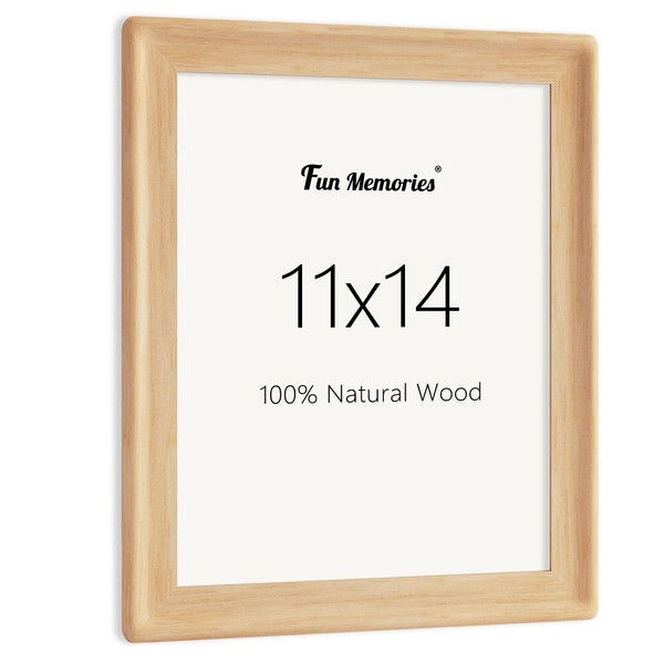 11x14 Picture Frame, Solid Wood Picture Frames, Hard Wood Frame with Tempered Real Glass, Rustic Wooden Photo Frame for Wall Decor, Natural Wood 1 Pack