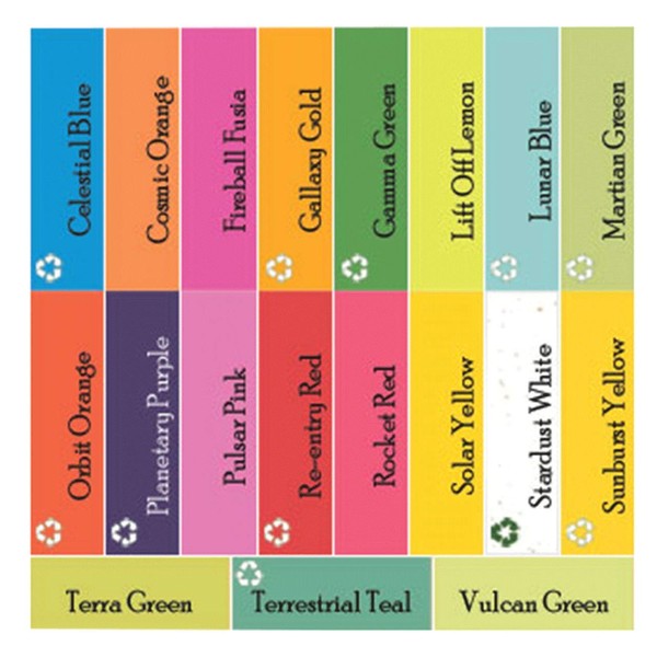 In this era of mass communication, sometimes you just have to get on a soap box and shout it out. That's when you need Neenah Paper's Astrobrights - the super saturated, first ever brightly colored line of text, cover paper and card stock that gets your message out Loud & Clear! The hard, smooth surface is excellent for offset or desktop printing, and the 60 lb text and 65 lb cover are laser and ink jet guaranteed to work on your desktop equipment. As if that's not enough all Astrobrights items are Forest Stewardship Council (FSC) certified to come from well managed and sustainable forests. Matching envelopes in popular sizes give you an entire communications system for must-read direct mail. Imagine the bright new ways you could use Astrobrights: Folders with multi-color coded inserts, brilliant signs and posters, handbills, letters or notices, bold covers, presentation tabs - there's almost nothing that Astrobrights can't brighten. Blast off with Astrobrights? They're out of this world!