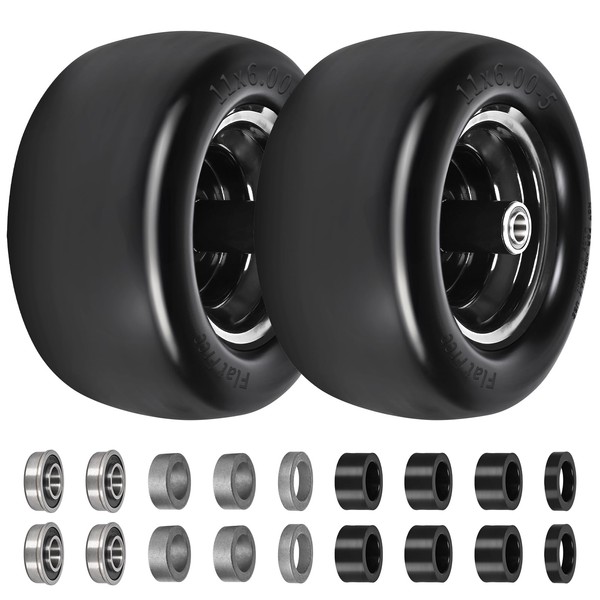 11x6.00-5 Lawn Mower Tires Flat Free,11x6.00-5" Flat Free Tires, with 3/4″ & 5/8″ Bushings, 6″–8″ Centered Hub, Fits Bad Boy, Cub Cadet, Zero Turn Mower, Riding Lawn Mower, 2 Pack