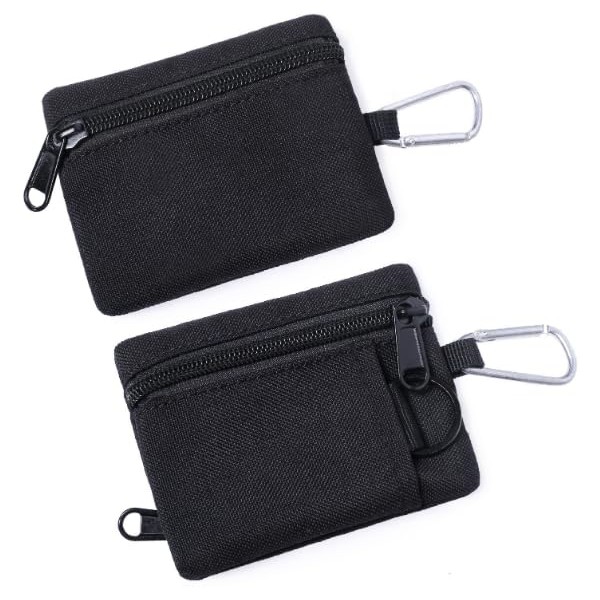 ガジェットポーチ 小型 小型コインケース カラビナ付き ジッパー式 小物入れ カード入れ 11x9cm ブラック 1個セット cos09