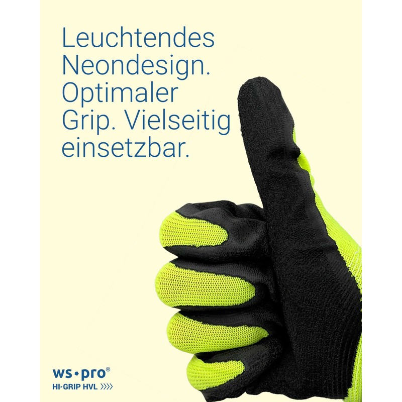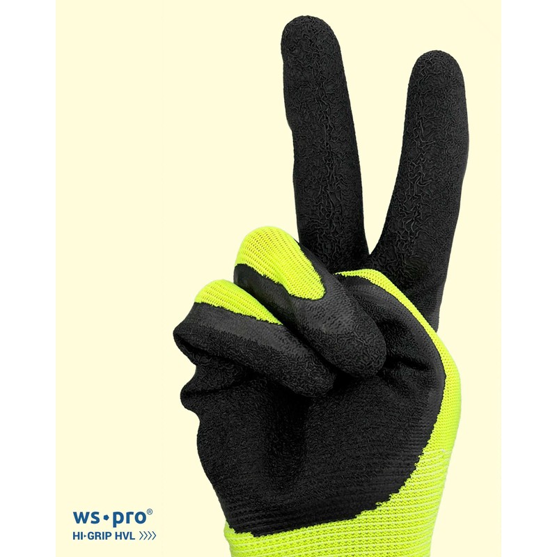 - Super tech nylon work gloves with crinkle latex coating. Increased visibility thanks to neon yellow 13G polyester fabric