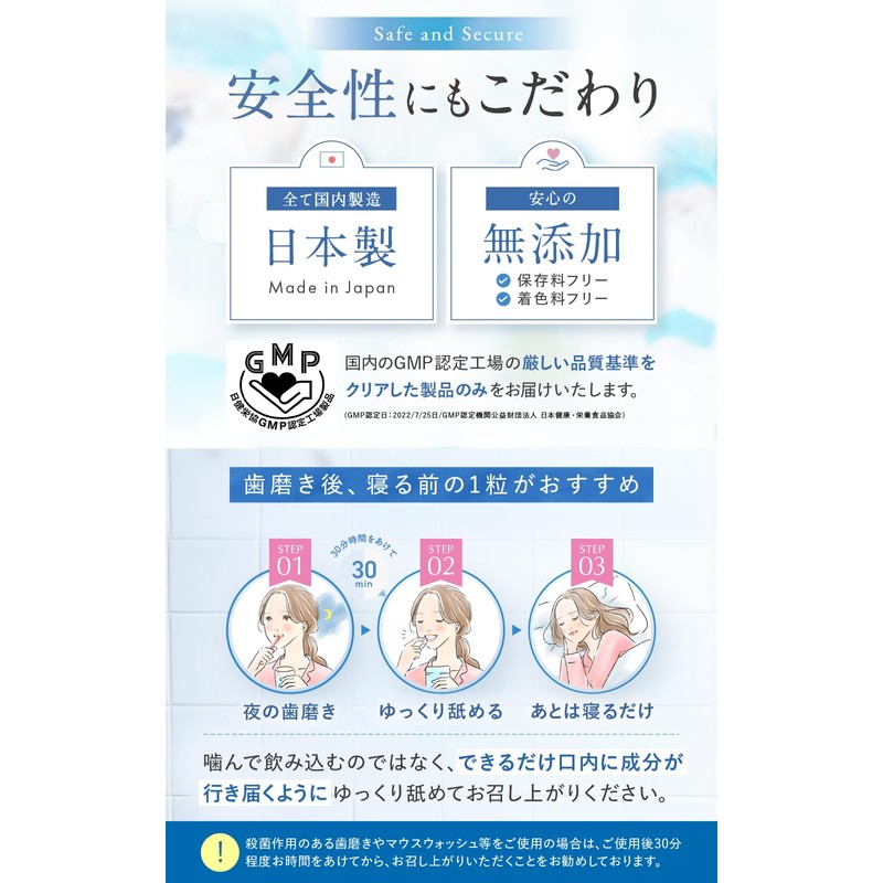 - ✅【水なしどこでも口臭ケア】舐めて食べられるタブレット錠なので、水なしでどこでも気軽にロイテリ菌が摂取できます。お出かけ前や接客シーンでの即効的な「 口臭ケア 」にも◎