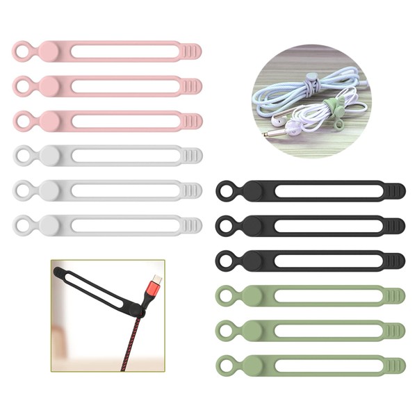[12本 4色]UMUSTケーブルバンド コードまとめる シリコン ケーブル まとめる 結束バンド 収納バンド 多機能 ケーブルクリップ 弾性 繰り返し再利用 コードバンド ケーブルタイ オフィス キッチン 机 卓上への配線 イヤフォン 電気ワイヤー USB充電ケーブル等の束る 収納 整理 まとめる(ブラック、ピンク、ホワイト、グリーン)
