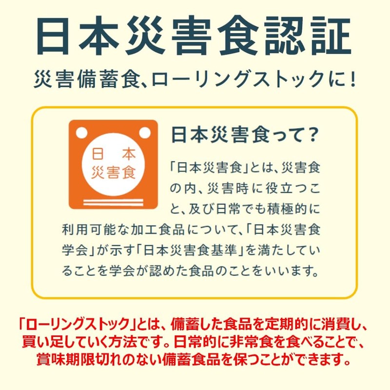 常温で1.5年の長期保存が可能です。ローリングストックにも適しています。