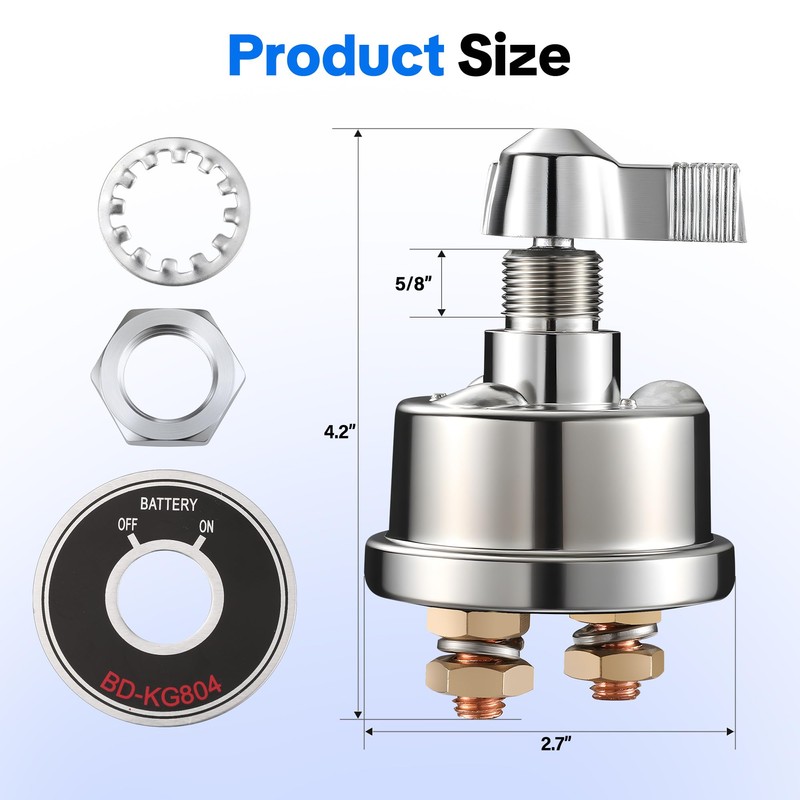 - 【Durable Construction】 Equipped with robust copper terminals and a corrosion-resistant face plate, this battery power switch is built to withstand harsh environments and deliver long-lasting performance.