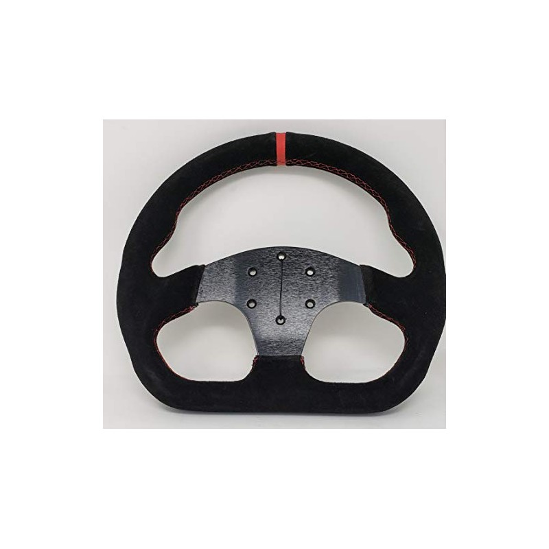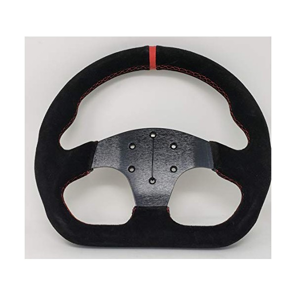 12.5" D-Shaped Steering Wheel Race Style alcantara Suede Leather with Red stitch no horn