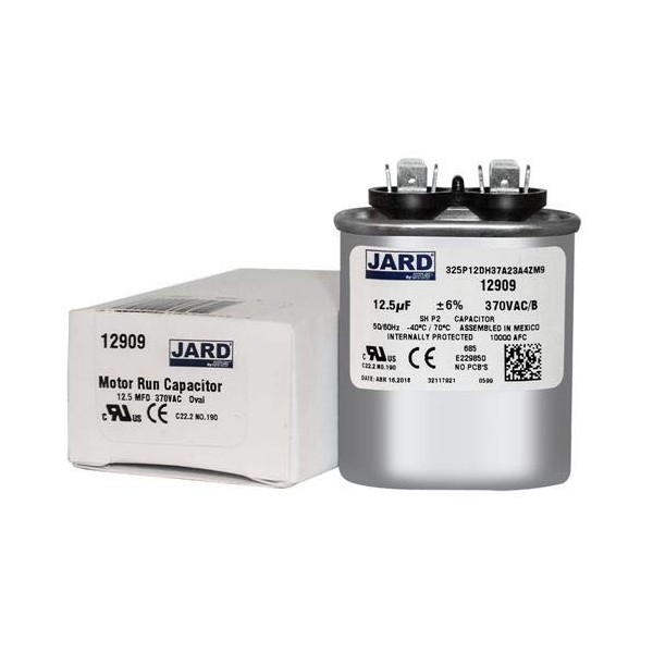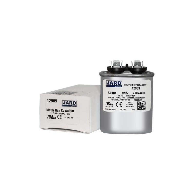 Replaces / Supersedes: GE / Genteq C312 C312L SUPCO CR12X370 CR12.5X370 JARD 12909 Mars 14009 12009 800P12DH37A30AX4X 27L572BX 27L572 CPT00255 CPT-0255 CPT0255 CPT-1867 CPT1867 CPT01867 and other 12.5 x 370 VAC Oval Capacitors with matching specifications.