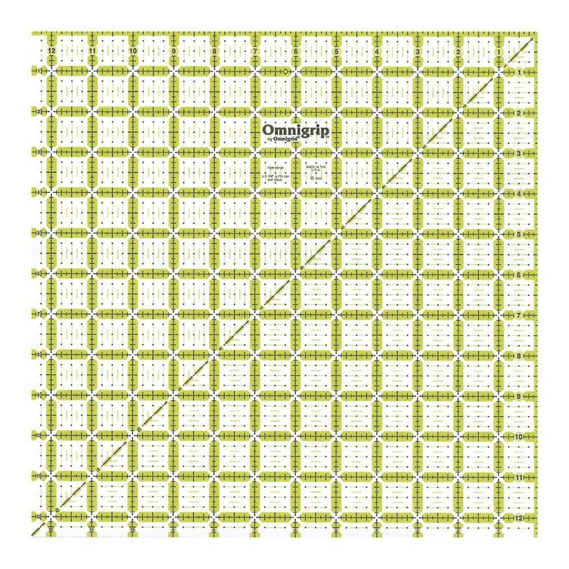 - Omnigrip square rulers are used for secondary cutting of strips and to square up finished quilt blocks|Use for quilting sewing and crafts - or any DIY project that calls for cut fabric|Use with a rotary cutter or a straight-edge blade|Patented non-slip backing to hold ruler in place during cutting|Edge markings for accurate measuring an laser cut edges for smooth deep cutting|Patented double-sight lines that show up on light and dark fabrics|Diagonal line for triangle cuts and left- and right-hand numbering and angle system|Heavy-duty durable acrylic material