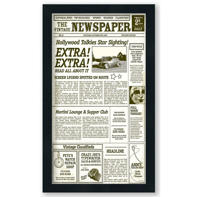 - WOOD NEWSPAPER FRAME: Our made in the USA wooden frame is the perfect way to display your favorite historic newspaper. The frame has a gallery-style look that will showcase the print from whatever paper you decide to place in it.