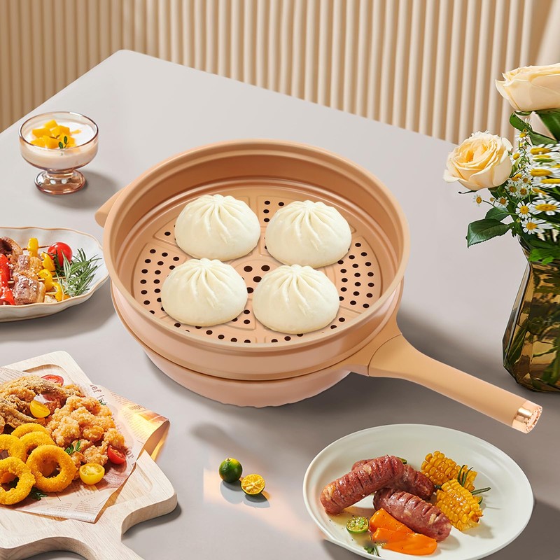 - 🍳[Versatile Always Nonstick Saute Pan] The pan is suitable for Deep Fried, Light Pressure cooking,Steam,Stew,Boil,Decoct,bake,Stir and Hotpot. you also use it to make rice.It can replace deep fat fryer,steamer,sauté pan,skillet,a light pressure cooker,stir fry pan,saucepan,roasting pan.Perfect for a "One Pan" minimalist kitchen