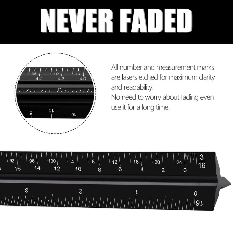 - 【LASER ETCHED TECHNOLOGY】:Architect ruler for laser etched,laser etched technology effectively prevents scale numbers and markings from wearing off or fading away, they will not wipe or scratch off ever.