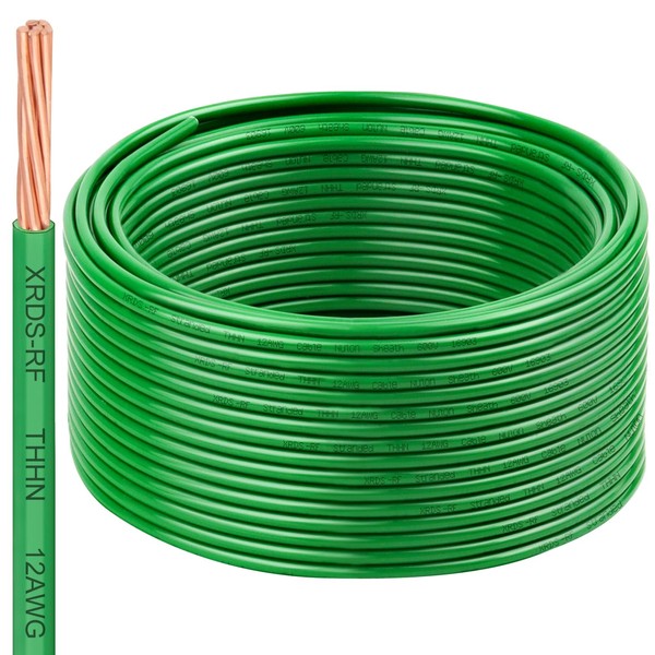 12 AWG THHN Stranded Bare Copper Wire 100FT Green Grounding Wire, Electrical Wire, 600V Rated Building Wire, Ideal for Panel Wiring, Grounding, Lighting Circuits, Control Systems