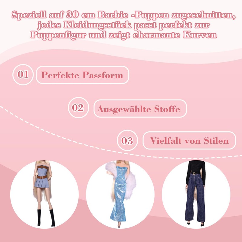 1. PERFECT FIT, COMFORTABLE EXPERIENCE:Specially tailored to 30cm Barbie dolls, selected high-quality fabrics, soft and skin-friendly, so that the doll can always enjoy comfort and beauty.