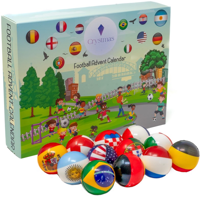 Kick off the holiday season with our 12-Day Football Advent Calendar for Kids, the perfect Christmas countdown for little football lovers! Each day reveals a new stress ball featuring the flag of an iconic international football team, from Argentina to Brazil and beyond. Not only will kids have a blast collecting the balls, but they can also test their knowledge with the included football quiz, making this calendar an exciting and educational experience.