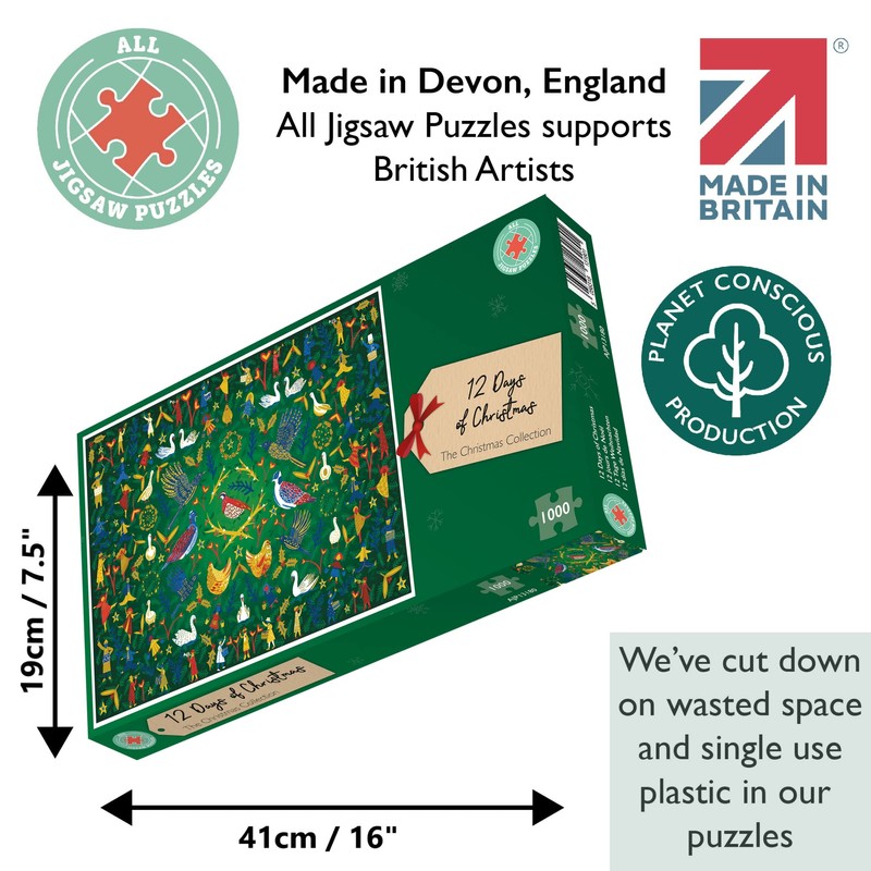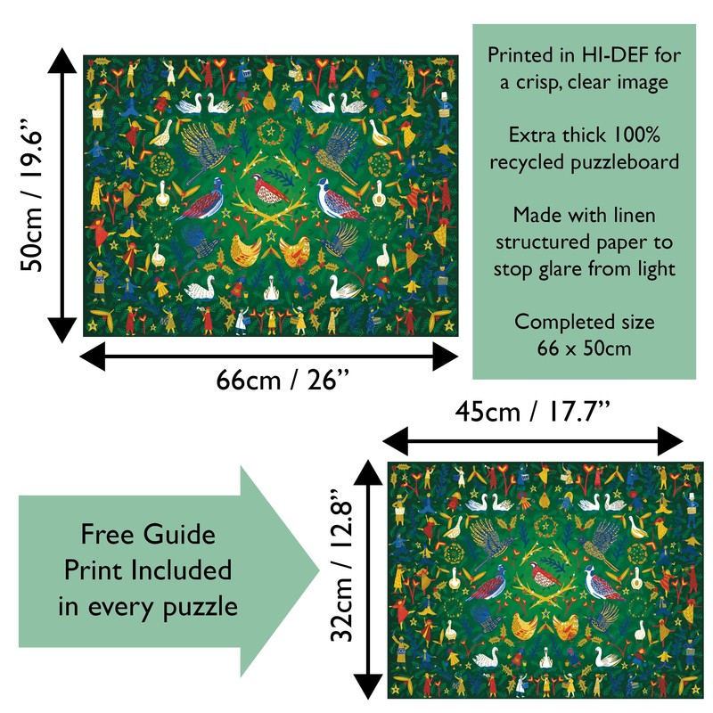Feel fantastically festive as you put together this beautiful 12 day Christmas puzzle with 1000 or 500 pieces.