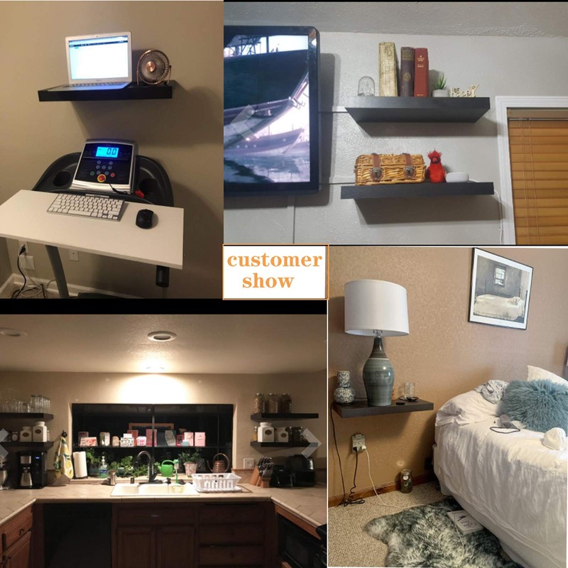 - 【Functinal】:①Put seasoning bottles on the kitchen in order, display some photo frames, collectibles or artworks to decorate your living room. Install in the bedroom or bathroom to hold beauty/hair products, or exhibit family photos gallery style in a long hallway.②Making full use of the empty wall, creating versatile storage space to display charming showpieces, decorative items, and other prized possessions。