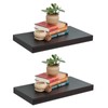 **24 inch Espresso Floating Shelves Wall Mounted - Set of 2 Display Ledge Shelves Wide Panel 12in Deep, Perfect for Bedroom, Bathroom, Living Room and Kitchen Storage** **Description & Features:** Our floating shelves refer to the 12" deep floating shelves.With its sleek straight lines and its hidden bracket hanging system,These Wall Shelves are floating shelves that provide an attractive and unique way to display objects. It is ideal for displaying decorative home accessories, books, CDs, vases, photo frames and so much more. You can hang several shelves to create a better effect.The ability to place these products on the wall any way you want gives you latitude for your own style and design. There are even new screws with wall anchors ,instruction is included in the package to help you install the shelf quickly and efficiently. Number of Shelves: 2 Features: Fixed Shelves Color: Espresso Metal Finish: Black Material: High Quality MDF Finish: Anti-Stained,waterproof Accessories Included: Hardware Unit Dimensions: 23 3/5" L x 11 4/5" D x 2" T Load bearing: Two shelves holds up to 20lbs each **Easy installation:** Each shelf comes with pre-drilled key holes, making them easy to quickly hang. Detailed instruction is always included. Sturdy enough to arrange and display your favorite small objects and hold them in place. **Hardware included:** Wall anchors and Phillips Head screws for all shelves are included. These high-quality anchors are provided The hardware is easy to use, and the instructions explain each piece's part. **High Quality:** These shelves are constructed of high-quality, light-weight MDF. Different finishes are available to match your home's decor. Turn empty wall space into the gallery of your dreams. 100% packaged carefully that helps ensure safe delivery.