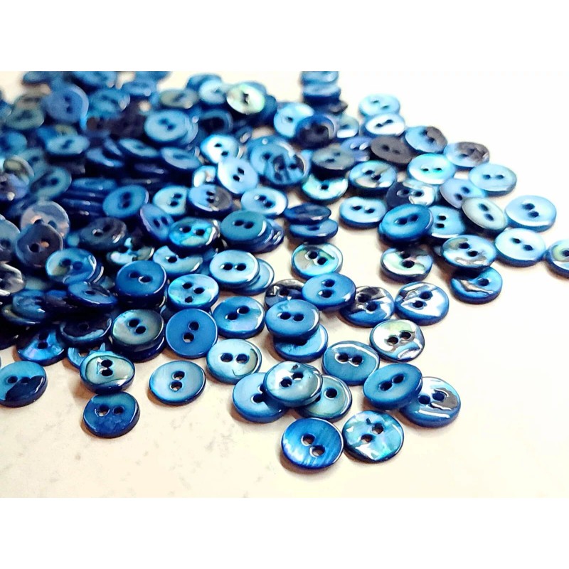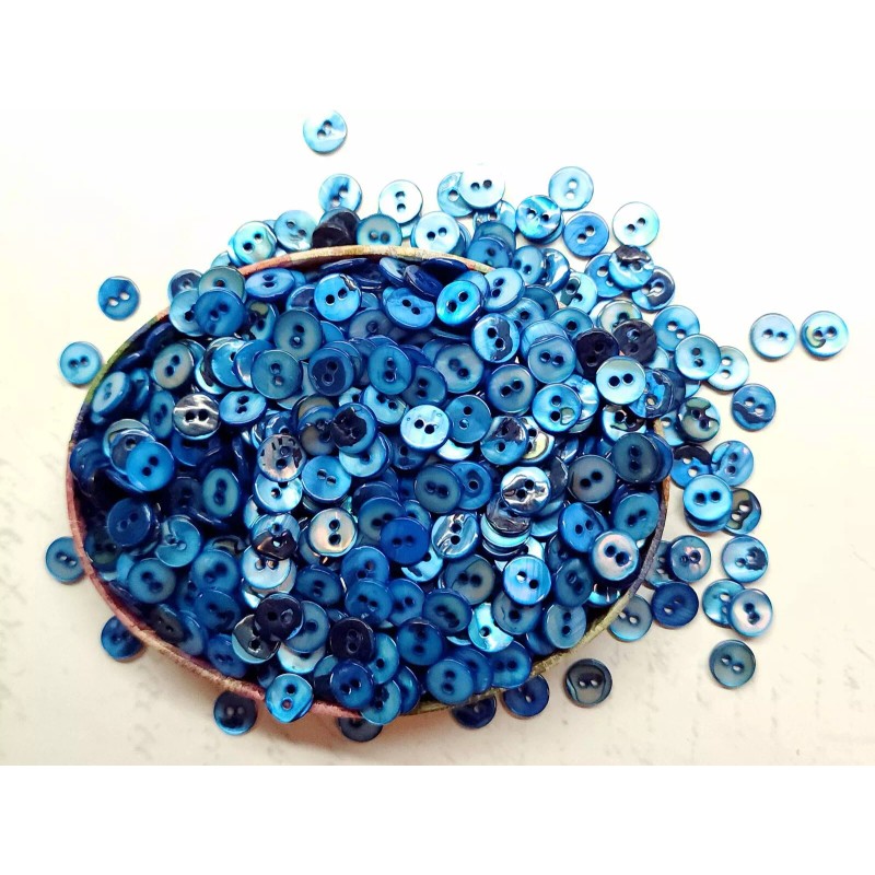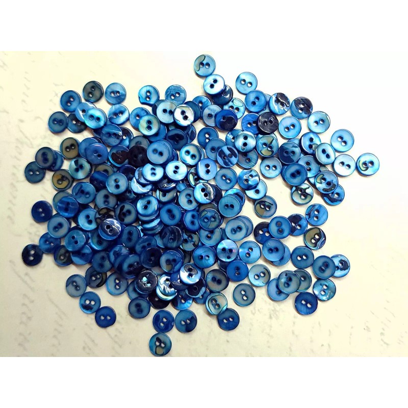 12 Diminutive Cobalt Blue Mother of Pearl Buttons ~ under 3/8" ~ Dimi MOP Shell