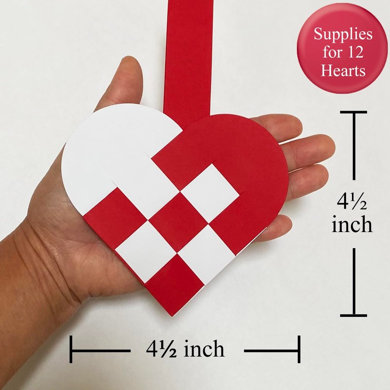 12 DIY Danish Heart Baskets. Precut and Ready to Use, No Tools Needed. Traditional Weaving Paper Craft to Make Julehjerter. Great as Braided Christmas Hearts (Red/White Kit)