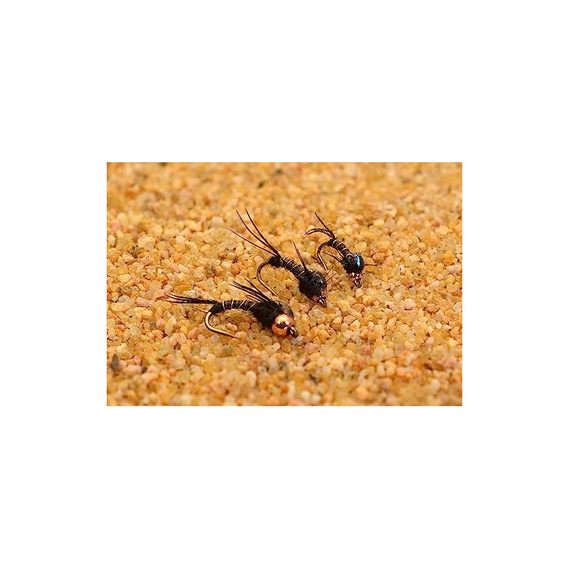 12 Flies - Bead Head Black Micro Mayfly Nymph Fishing Fly - Mustad Signature Fly Hooks (12ct Assortment)