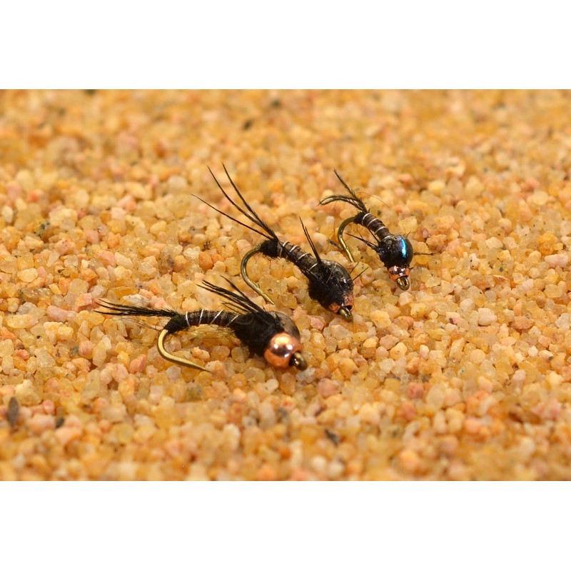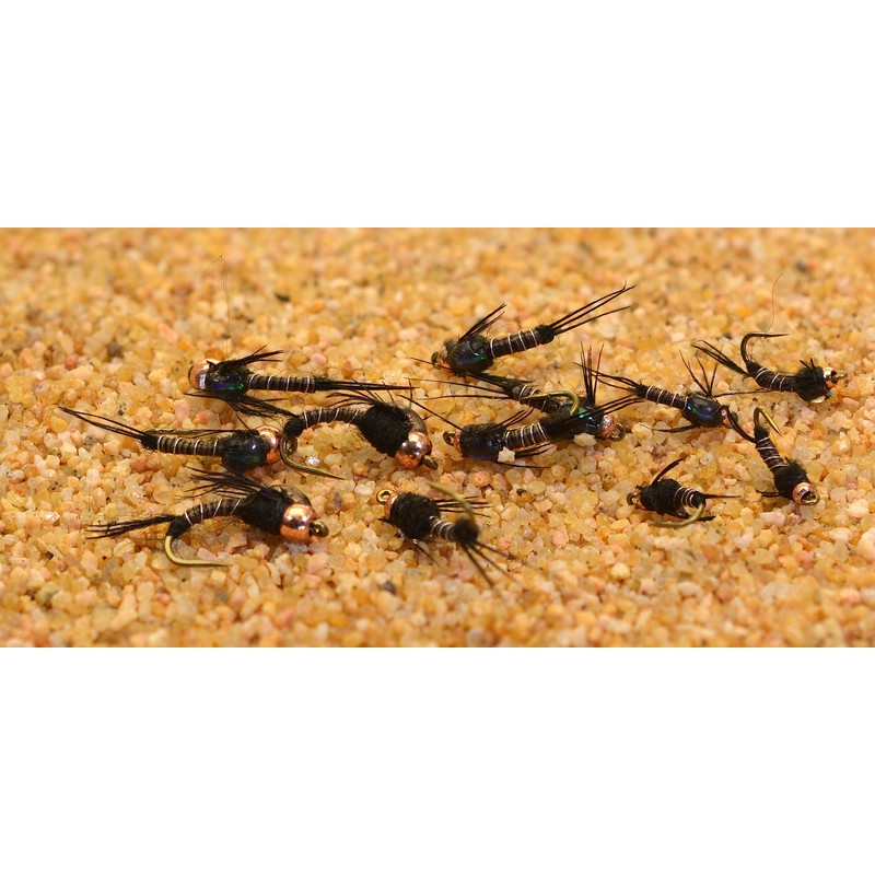 12 Flies - Bead Head Black Micro Mayfly Nymph Fishing Fly - Mustad Signature Fly Hooks (12ct Assortment)