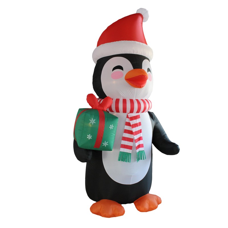 - Stakes, tethers, and air blower included for quick and easy setup. This Christmas inflatable penguin is specially designed for quick and easy inflation following simple steps. Unpack the box, close the zipper in the rear, plug it in the socket, inflate it in minutes, and enjoy! Please remember to zip it up before inflating, which would ensure the seal performance and perfect inflation effect. The Christmas blow up decor comes with a box so that you can easily store until the next season.