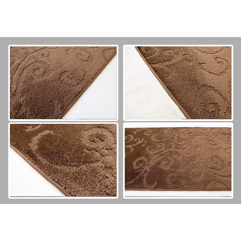 - Rubber Backed Runner Rug: This modern non-skid brown scroll pattern hall runner rug made of medium cut & loop pile. Rubberized backing and is safe for children, dogs , and the elderly as long as it is used on a bare floor. No more worries about slipping or tripping on the rug. No additional rug pad needed. This scroll pattern custom cut runner rug is noise reducing, sturdy as well as non-shedding.