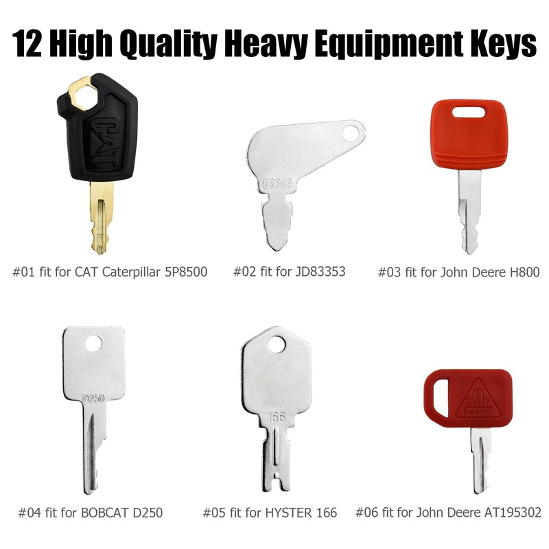 • 【Equipment Keys】12PCS heavy equipment keys master set construction ignition key operator keys for excavators, loaders, backhoes, tractors, dump trucks, bulldozers and many more heavy equipment.