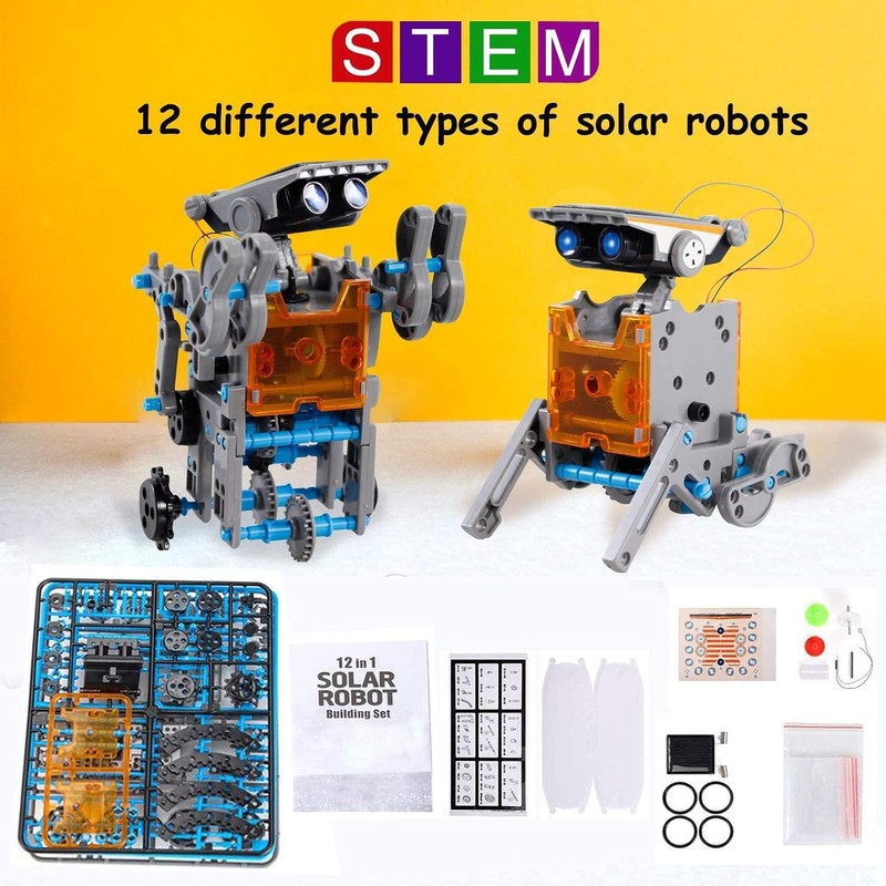 - ☀【12-in-1 Solar Robot Building Kits】:Kids can use their imagination and creativity to create 12 different types of building robots,which can move on land or water.The science kits for kids 10-12 will attract your little architect,help kids develop manual dexterity,problem solving skills,and improve logical thinking.It is an idea gifts for boys 8 9 10 11 12 years old