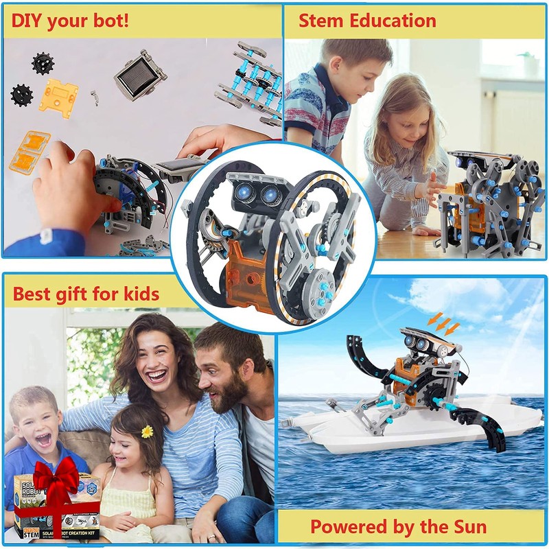 Renewable energy is the future of our planet, that’s why it’s really important for us to teach young boys and girls how to use it.No need batteries,the science toys kit for kids 10-12 comes with solar panel battery that is used for every robot.The stem toys for 10 + year olds solar robot toys collects solar heat energy into an electric energy drive motor to support the robot to move.For better effect,we suggest to play it on clear sunny days.