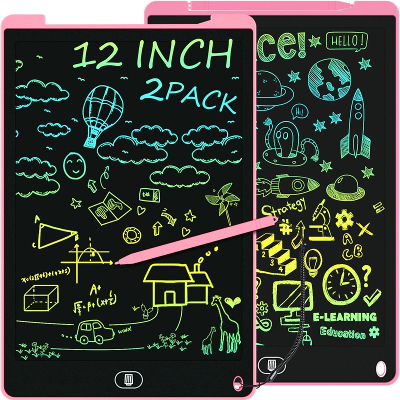 12 Inch LCD Writing Tablet,[2 Pack] Electight Colorful Drawing Board, Eye Protection Doodle Scribbler Pad, with Lock & Delete FUNC, Toys & Gifts for Kids & Adults at Home, School - Blue & Pink
