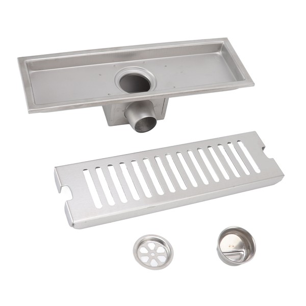 1、Quick Drainage and Anti Clog: 30cm long, 9.9cm wide, with central water outlet. High flow capacity. Hair filters not only collect shed hair easily but also avoid clogging and better drainage. 2、Prevent Odor and Backflow: This 12 inch floor drain has a check valve drain design. It can effectively prevent the backflow of water and prevent unpleasant odors from entering the house. 3、Stainless Steel Material: The rectangular shower floor drain is made of high quality 304 stainless steel, the drain surface is brushed to prevent corrosion, scratches and rust, and it is durable. 4、Wide Range of Applications: Fashionable floor drain is widely used in home bathroom, kitchen, balcony, swimming pool, garage, basement, toilet, hospital, office building, industry, etc. 5、Easy to Install and Clean: Shower drain can be directly connected to 50mm diameter water pipe. The linear drain heavy duty steel cover can be easily removed with a lift key, making it very convenient for regular cleaning.