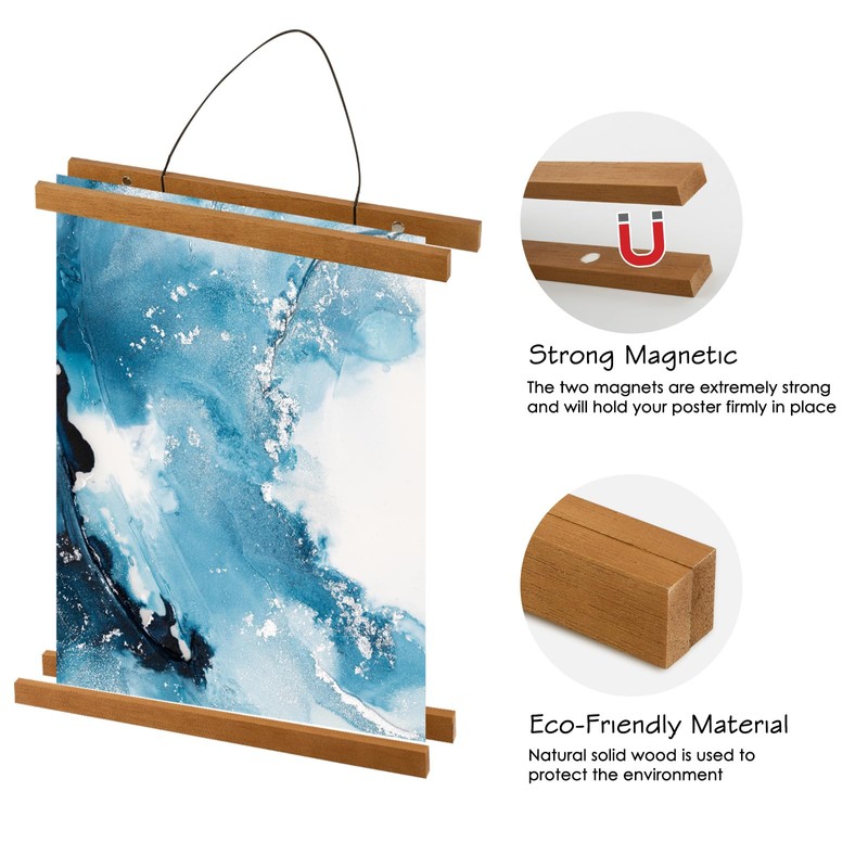 - Material: This Magnetic Poster Frame Is Made of Natural Wood With Strong Magnet, Keeping Your Poster, Picture, Canvas Artwork From Falling Off, Strong Enough for Hanging Up Posters of Different Lengths