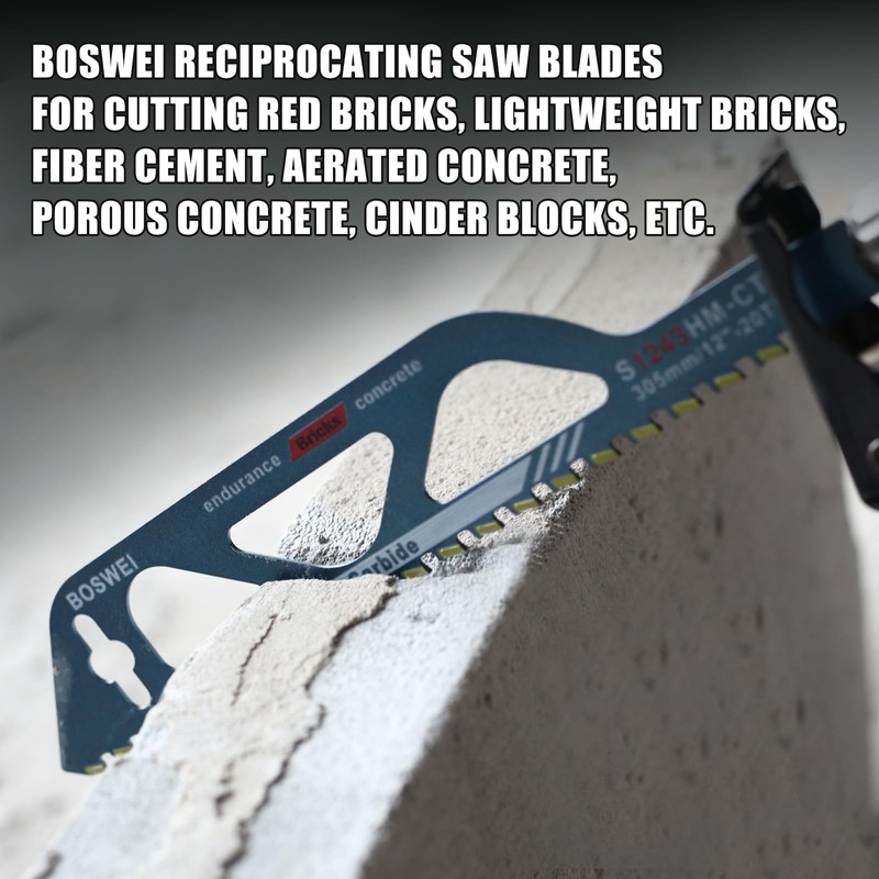 12 Inch Masonry Reciprocating Saw Blade, 20 TPI Teeth Tipped Cutting Reciprocating Saw Blade, Concrete Blade Blades for Cutting Red Brick, Light Brick, Aerated Concrete, Porous Concrete, Cinder Block