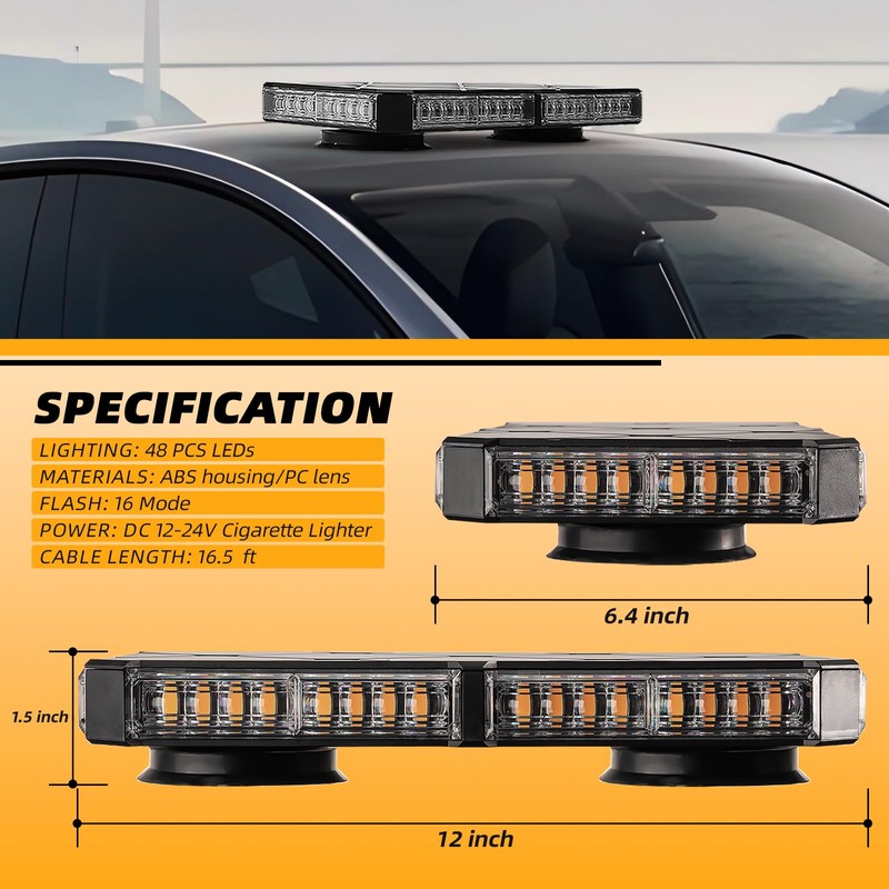 ELECHOI Amber/White Rooftop Magnetic Strobe Lights for Trucks, Emergency Beacon Warning Caution Light for Vehicles Car