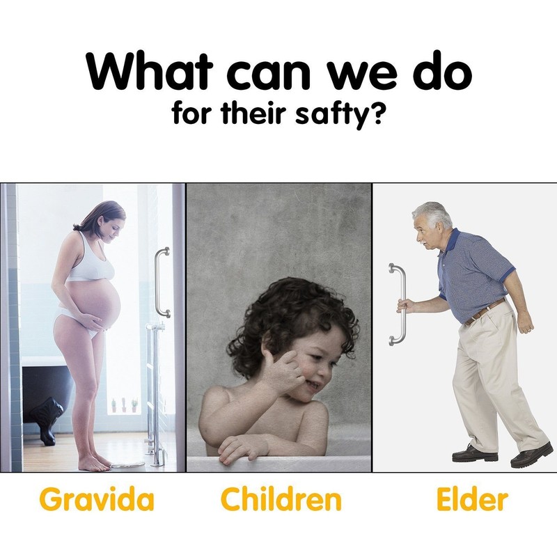 - Use safety grab bars in the bathroom, kitchen, along stairways, or in the laundry room for additional fall prevention, especially for the handicap, elderly, pregnant women, and children.