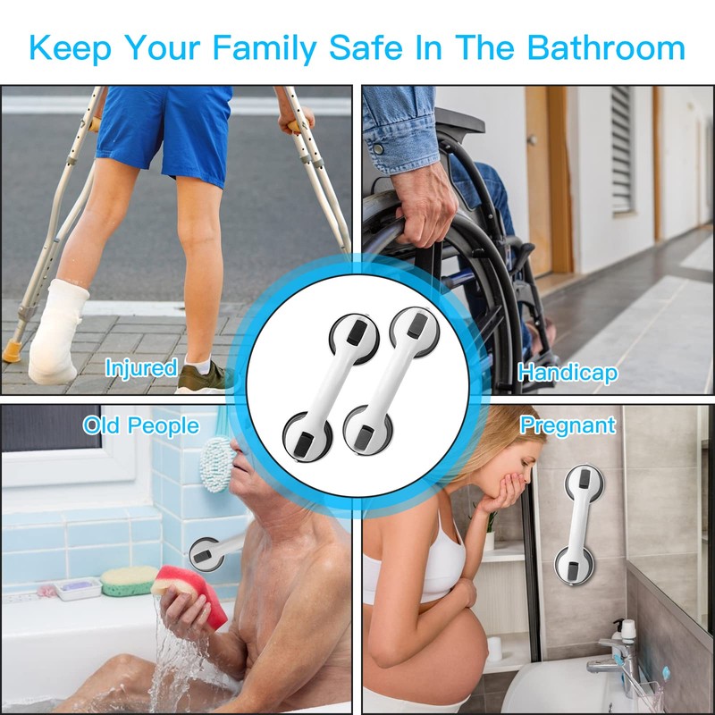 • Sturdy and Durable - 2 suction cups with strong power, ensure a non-slip grip for more stability and security. You won't slip even when wet, providing safety and security in bathroom, bathtub, shower and toilet handrail.