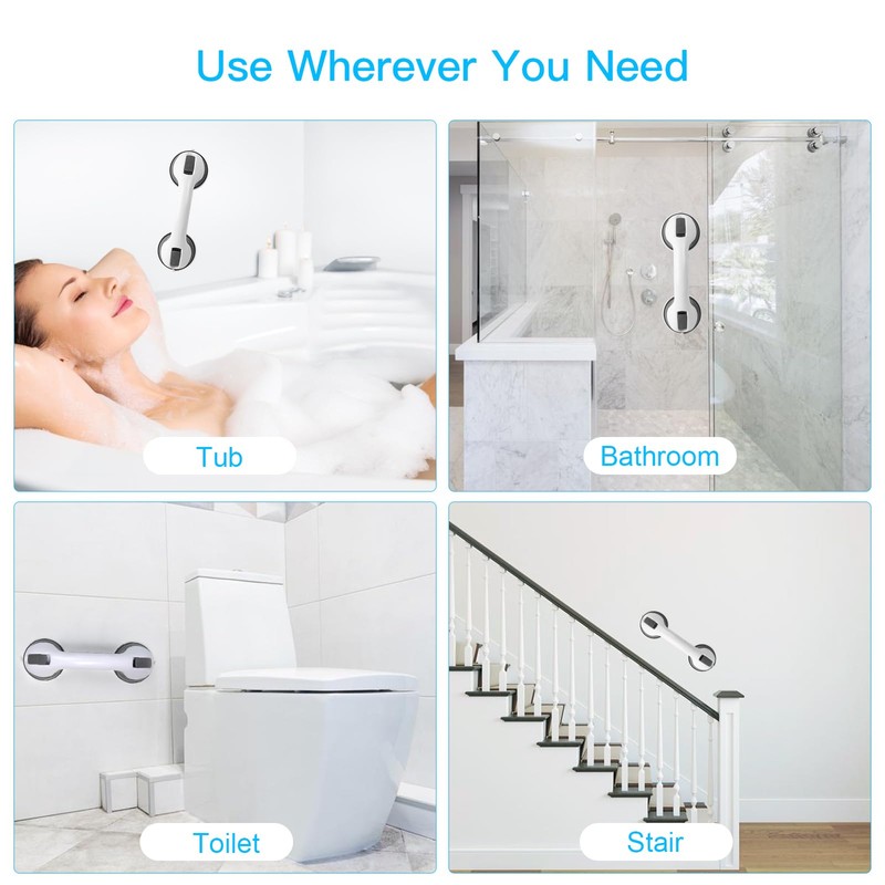 The suction grab bar is a type of disability and mobility aid, provide support and stability while getting into or exiting the bathtub or shower. Perfect for the bath, shower, next to the toilet, near the stairs, or beside a chair.
