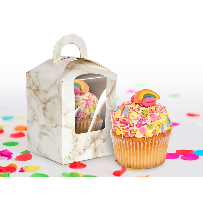 12 Individual/Single Cupcake WINDOW boxes with inserts - Natural Marble -
