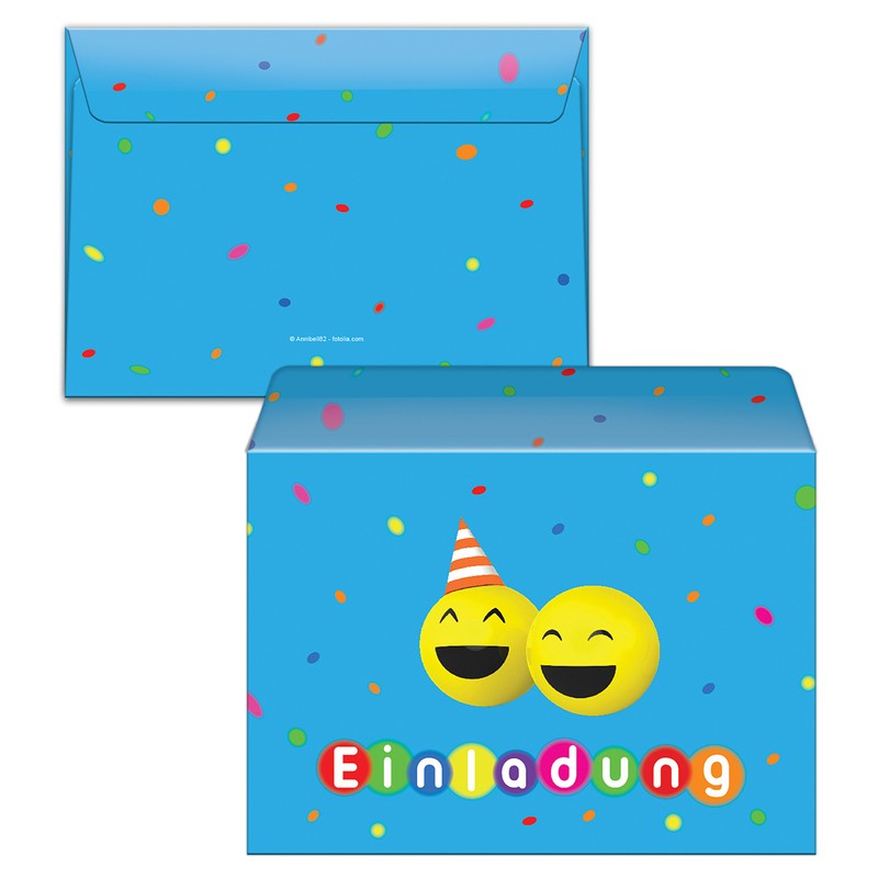 - 12 colourful and fun invitation cards + 12 envelopes / blue + 12 bags + 12 stickers for children's birthday parties with the motif "Party Balls".