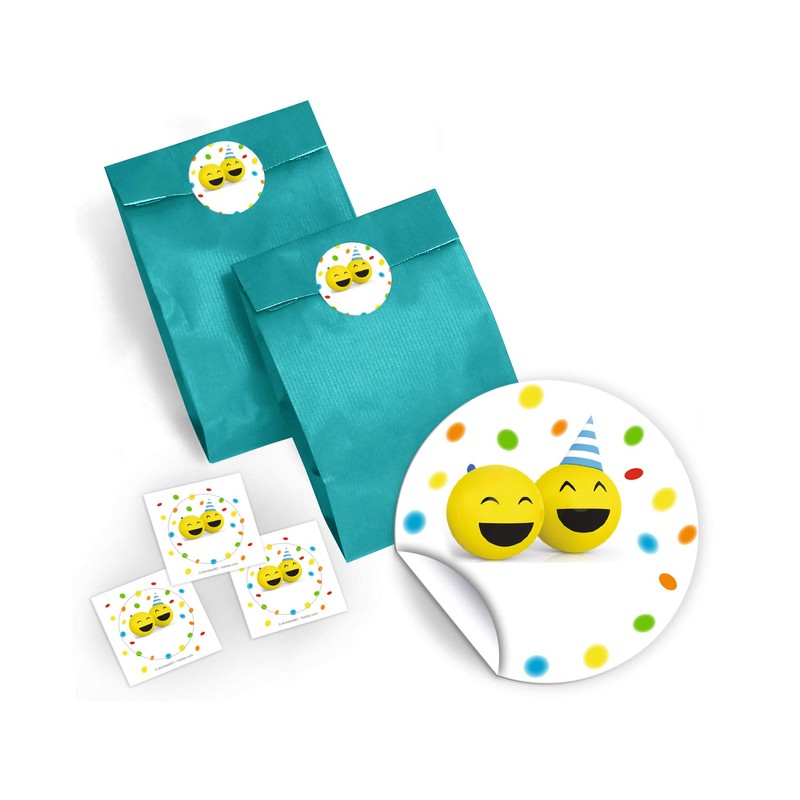 - The party bags have a size of 12 x 19/21 (80 gsm). The bags are very suitable for filling with small party bags at children's birthdays. The stickers are 4 cm / round (90 g/m) and are pre-cut on the backing material (5 cm x 5 cm). You can write on the sticker the name of the guest or e.g. "Thank you".