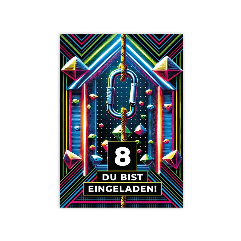 12 Invitation Cards for 8th Children's Birthday Girls Boys Climbing Park Cool Colourful Invitations Eighth Birthday