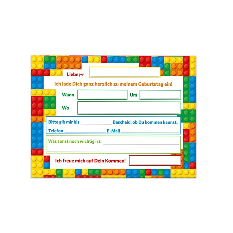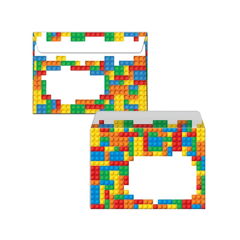 12 Invitation Cards with 12 Envelopes for 5th Children's Birthday Party Invitation for Boys Building Blocks