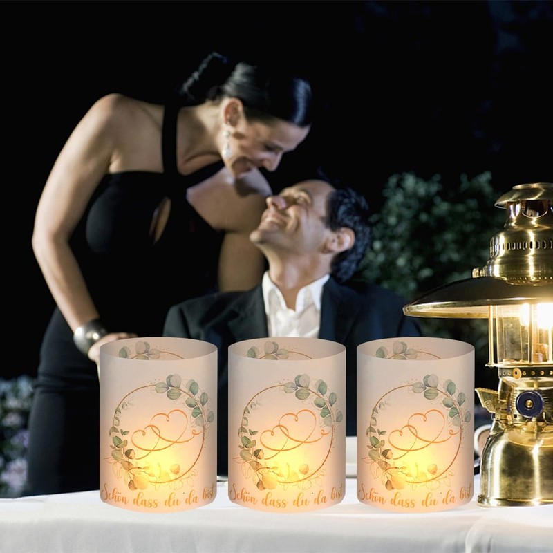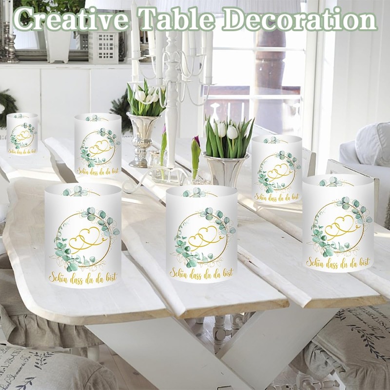 - High-quality material: the 12 lanterns are made of high-quality film and well fixed (💖💖💖Important note: no candle, no tea lights, the lantern is not made of glass, does not contain glass, very light, not suitable for outdoor use). Motif: "Schön dass du da bist" Liebevoll, eucalyptus. Unfolded size: 27 x 10 cm, folded: 8 x 10 cm
