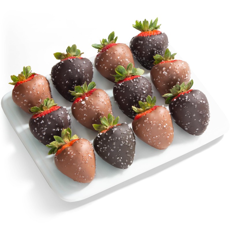 12 Milk & Dark Chocolatey Sea Salt Covered Strawberries by Love Berries