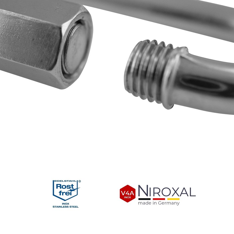 - 1 piece stainless steel quick release made of V4A short shape with metric thread. Inner length: 81 mm; Inner width: 24 mm; Opening: 14.5 mm industrial quality with high breaking load (4,500 kg at 12 mm material thickness)