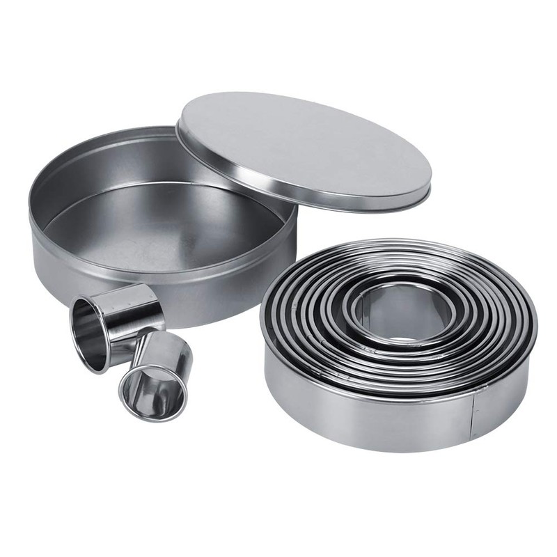 12 Moldes Redondos de Acero Inoxidable con Caja de Hierro (12 Unidades)