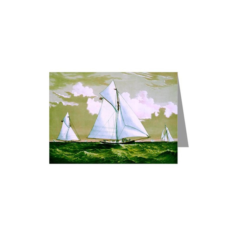 12 Note Cards of Currier and Ives Handcolored Lithograph Depicting The Americas Cup Race 1881 with Yachts Mischief and Atlanta