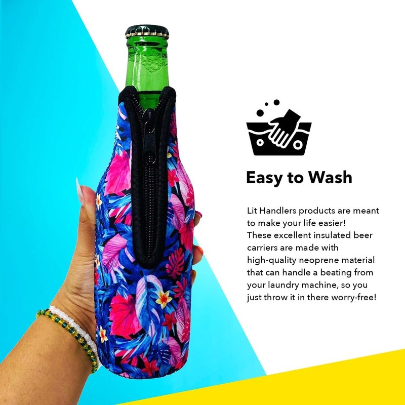 - Easily Identify Your Drink: Bring a colorful lit holder with handle and pocket to parties and gatherings with our beer bottle cooler! The unique designs of this neoprene bottle insulator will definitely stand out from anything else in the crowd for easy identification.